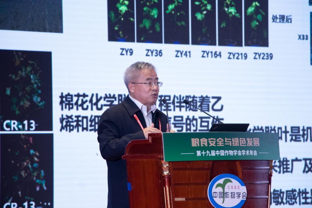 公司张献龙教授作了题为“多组学解析棉花性状形成的生物学基础”的报告。他从多组学的基因组、转录组、功能基因组三个方面揭示了棉花纤维驯化与高温响应机制、性状形成的调控路径等棉花育种的生物学基础。最后他指出,棉花育种还应加强基础研究,为原创积累力量;要从高投入高产出模式走出来,建立低耗高效绿色生产体系;要改变育种思路,接轨智慧农业的育种方式;要加强资源创新,强化组学对作物育种的指导。