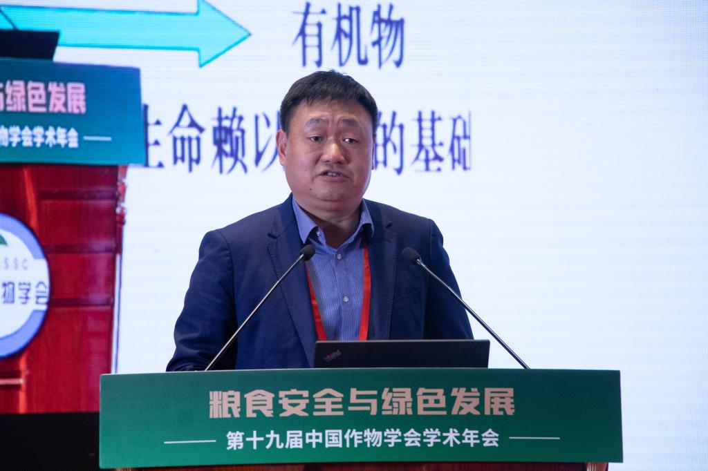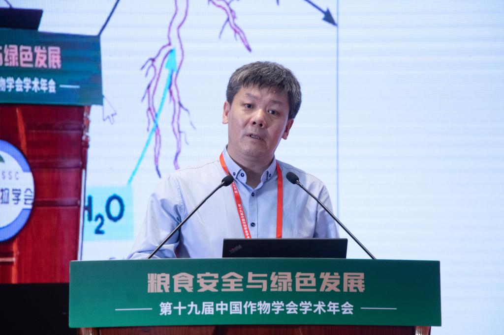 中国农业大学郭岩教授以“盐胁迫下钠离子转运的调控”为题作了报告。他指出,当钠离子在植物细胞内积累到一定程度,植物会通过一系列方式将钠离子排出以减弱负面影响。其中,SOS系统在这一调控中起着重要作用。通过研究发现,SOS2会被钠离子特异性激活,钙信号也会通过一定方式影响SOS2的活性。通过进一步研究发现,钙离子可促进14-3-3蛋白与PKS5的互作,同时减弱SOS2和14-3-3的互作。来自河南大学的张立新教授就光合蛋白转运与分选机制这一问题展开全面汇报。针对叶绿体蛋白转运分选过程中底物如何到达类囊体、蛋白分选的机制等重要科学问题,他就STT1复合物的分子结构以及该物质在光合作用中的运作机制作了深入浅出的解释。北京农林科学院玉米研究中心赵久然研究员详细论述了高产优质、多抗广适系列优良玉米品种的培育与应用,他以生产需求为导向,以解决问题为出发点,围绕创新育种技术方法及核心种质、创新杂优模式等方面进行了探讨。南京农业大学李刚华教授带来了题为“水稻机插缓混一次施肥技术的研究与应用”的报告。他指出,水稻生产存在氮肥施用量大,施肥次数多、用工难等关键问题,当前精准施肥主要是施肥量的精确,应根据不同土壤类型、不同品种、不同生态区、不同播栽方式下的需肥特征,研发智能肥料设计系统,精准设计生产不同的专用缓混肥。