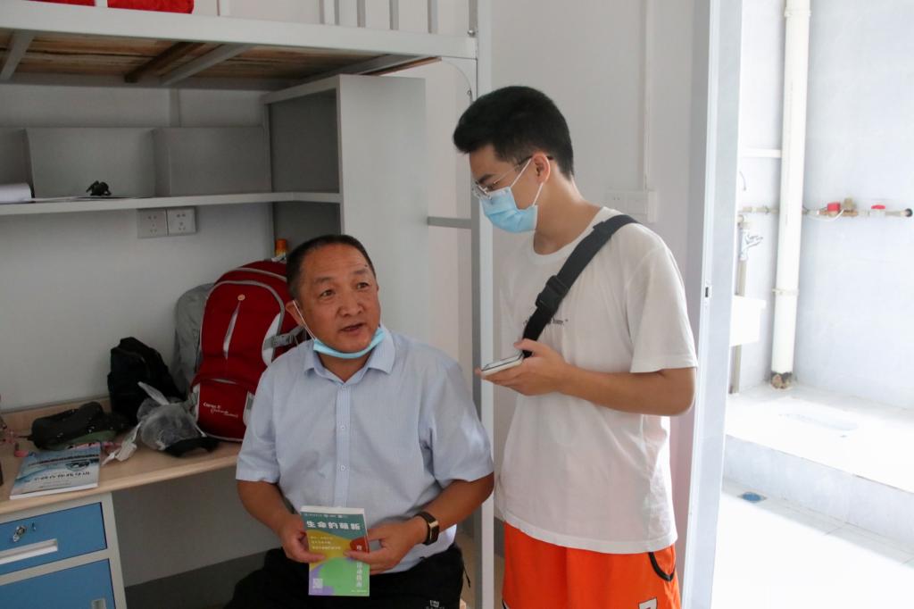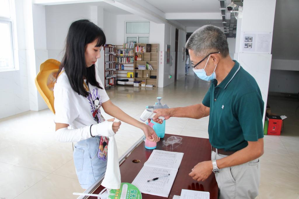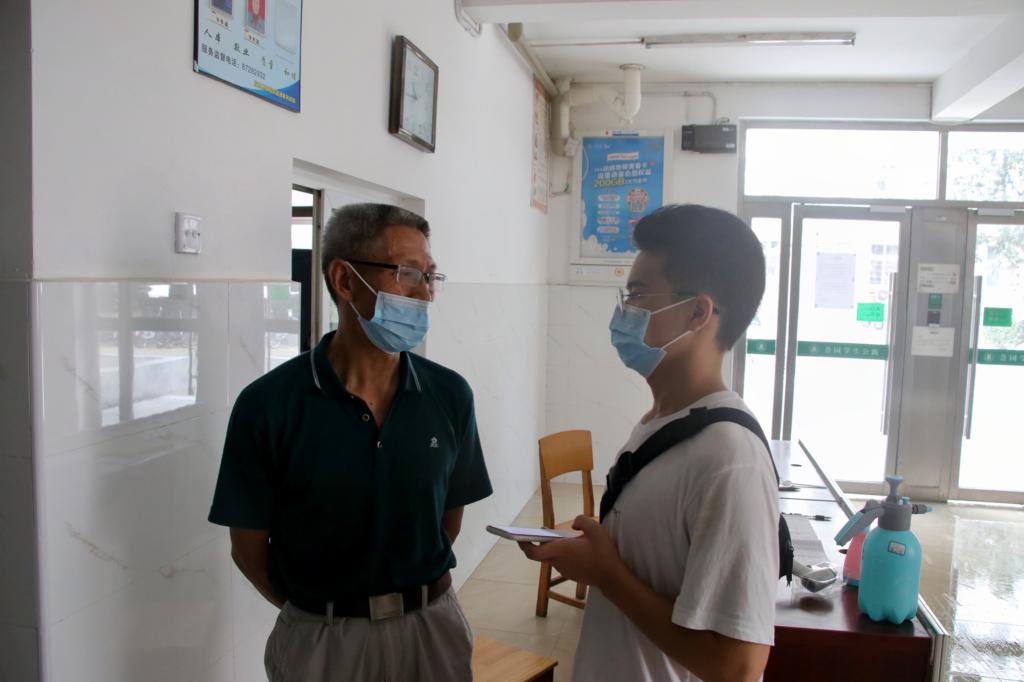 “您的体温是36度,请您把温度数据记录在后面的空白格中。”来到寝室所在的荟园六栋,楼栋的宿管肖先生正在拿着测温枪测量着往来人的体温,确定外来人员体温正常并要求他们登记完整信息。谈到此刻迎新过程时,肖先生说道:“学校每年安排志愿者来迎接新生,他们将志愿者服务精神代代相传的同时引导着新生尽快融入老员工活,减少了很多不必要的麻烦。”同时他祝福每一位新生都能在大学四年里健康成长,从寝室相处中收获经验,提升自我。随后,毕灵瑞用领取的钥匙打开寝室的大门,并表示期待着接下来全新的老员工活能够饱满充实。