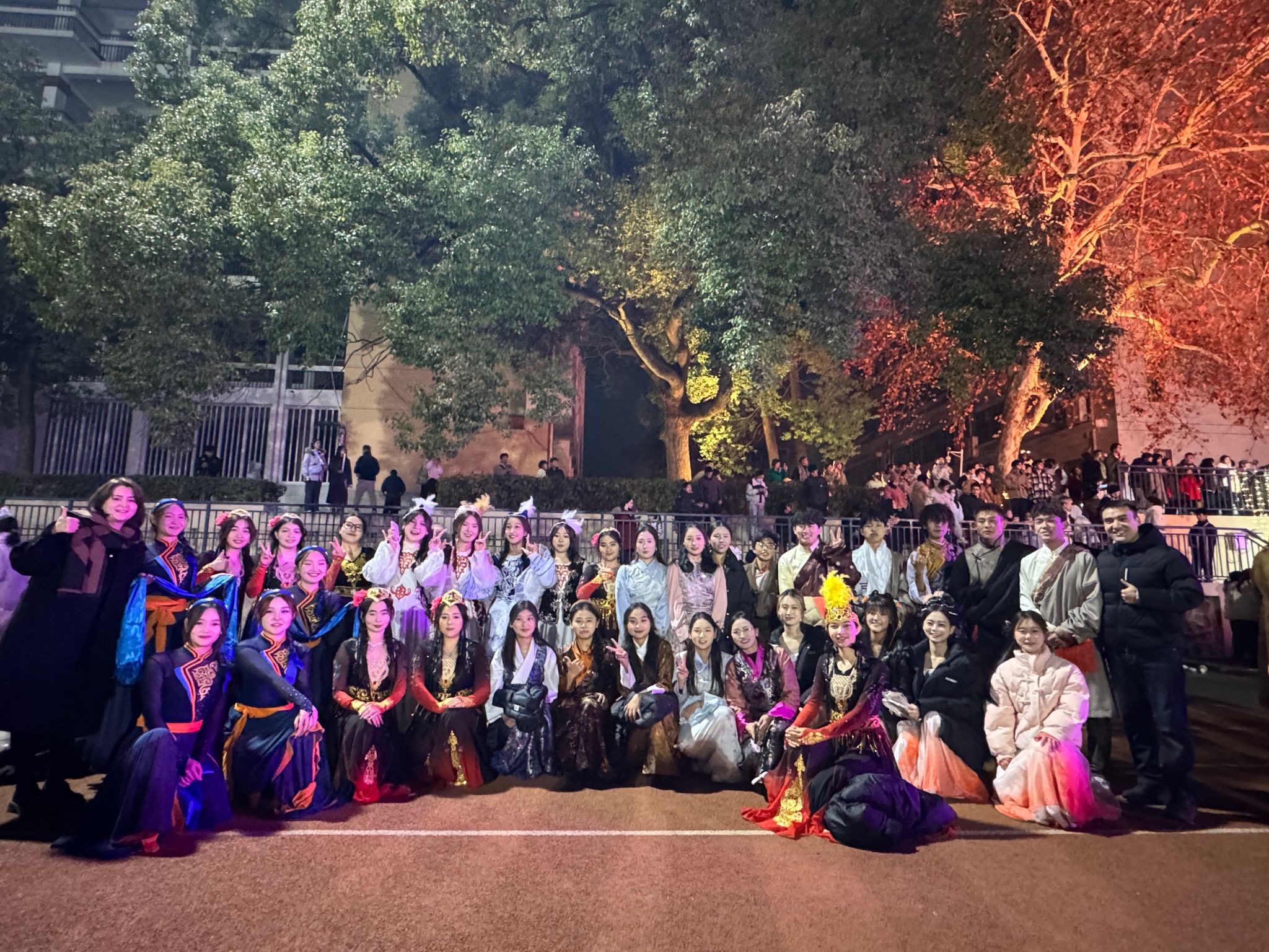 “在这欢乐的跨年时刻,我们邀请了藏族、维吾尔族、蒙古族、哈萨克族及汉族的同学,为大家呈现一场精彩的舞蹈盛宴。”“多元共舞,欢乐跨年” 项目负责人普布片多介绍道。舞台上,各民族特色舞蹈轮番登场,尽显独特文化魅力。活动还设置互动环节,邀请观众上台学习民族舞蹈动作,一同分享欢乐。在所有民族舞蹈结束后,全体参演同学共同演绎《美丽中国》,各民族员工代表上台用本民族语言向全校师生送上新年祝福,为活动画上圆满句号。